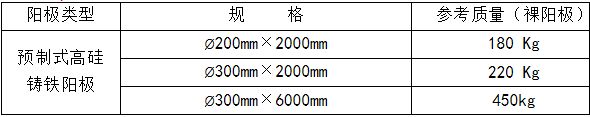 預包裝高硅鑄鐵陽極采用Φ50×1500mm或Φ75×1500mm高硅鑄鐵陽極、鍍鋅鐵板及焦碳填料等主材料制成。主要用于各大型埋地金屬構筑物的保護與防腐蝕。其中高硅鑄鐵陽極按照設計技術規(guī)格書及相關標準生產,產品化學成分和性能達到英國BS標準水平。具有消耗低、接地電阻小、電位穩(wěn)定、利用率高、施工方便、防破壞性強等特點。